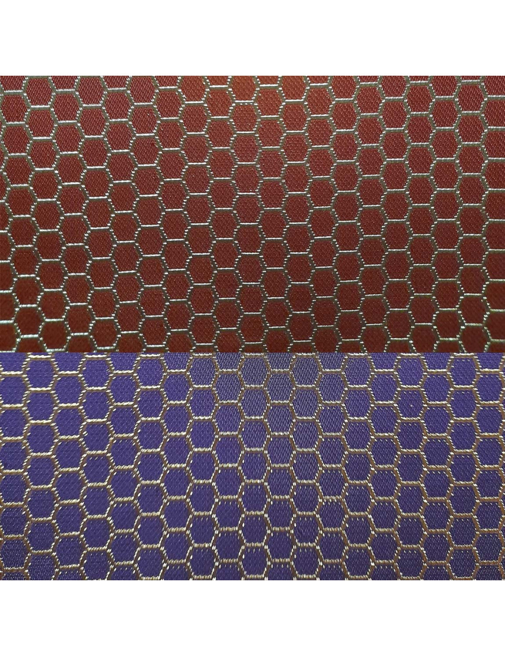 • Tela tissu decorada con diseño de colmena sobre morado o rojo, ideales para la confección de Mantos, vestidos para la Virgen María, paños de Atril y Ambón...
