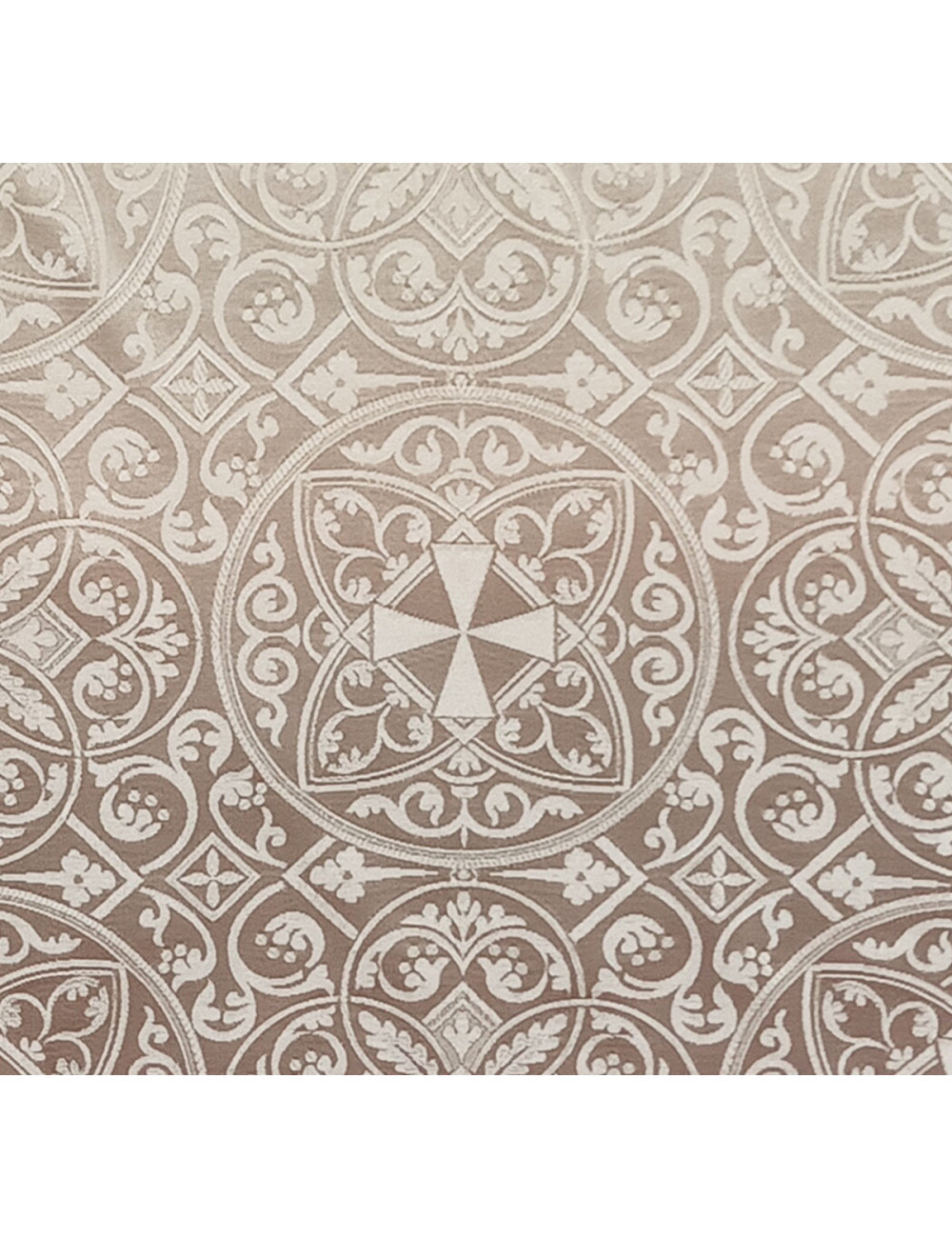 - White bizantine damask fabric with cross motifs. Soft and sober tissue ideal for making of Mantles, dresses for Virgin Mary, Pulpit Veils, chasubles, dalmatics, pluvial cloaks...