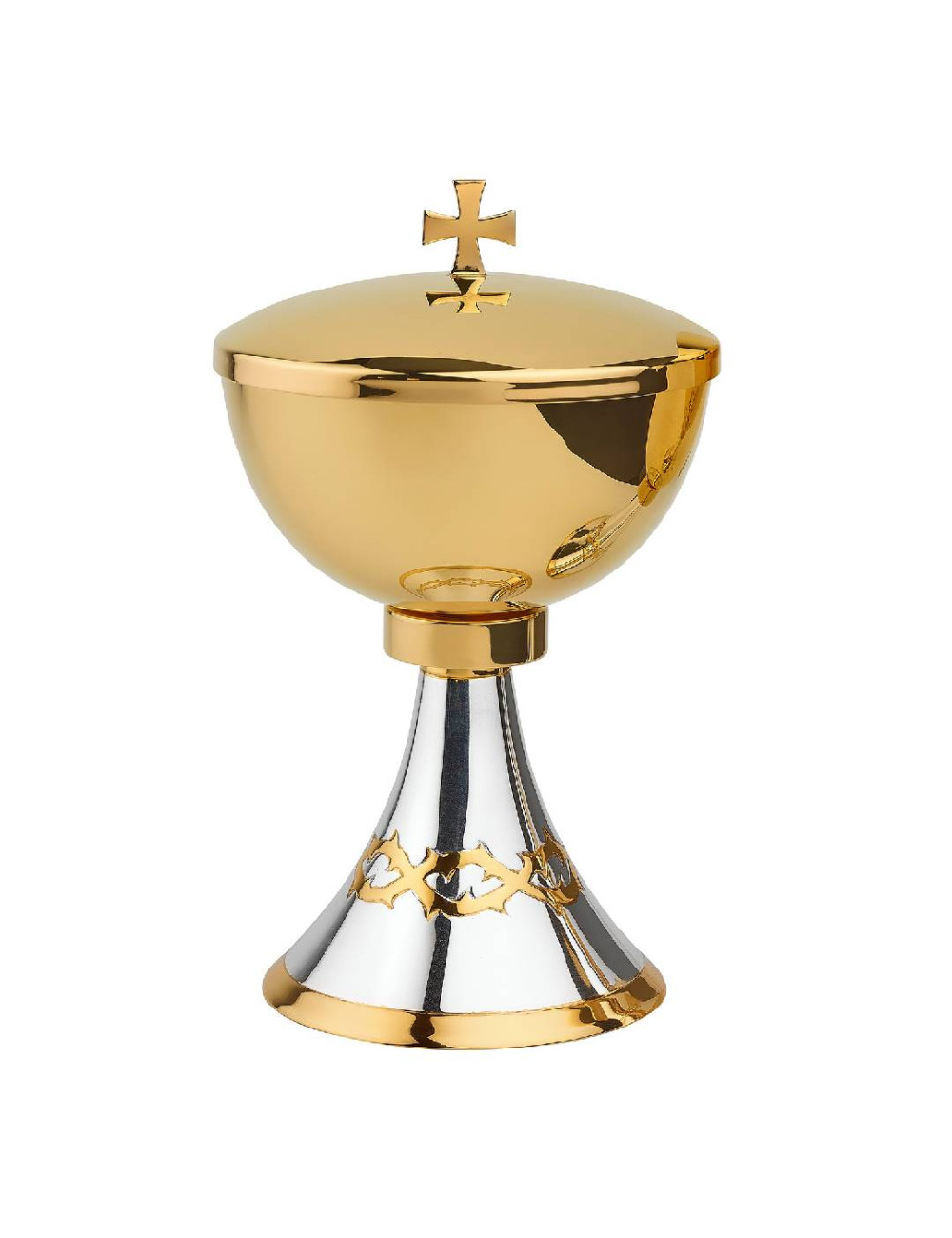 - The ciboria has elegant and modern lines and is decorated with crown of thorns motifs.