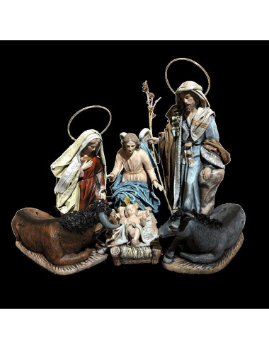 Nacimiento realizado en resina coloreada compuesto por 6 piezas