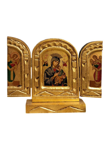 Byzantine style triptych made with the image of the Virgin of Perpetual Help or Virgin of Untier of Knots made on wood, with a certificate of originality.