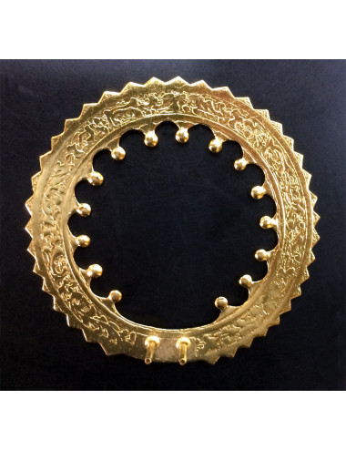 Aureola de Santo fabricada en metal su color, decorada con detalles vegetales y con motivos en el interior y el exterior. Para medidas intermedias, por favor, consúltenos.
