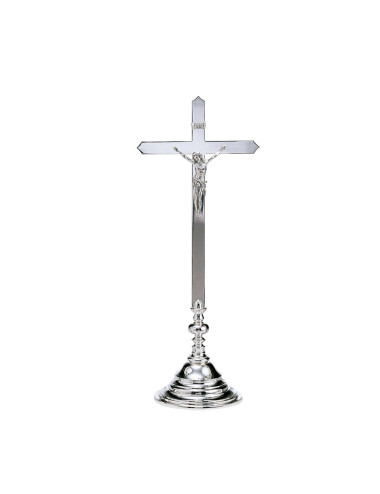 Cruz de altar de estilo clásico realizada en metal su color o metal plateado con una altura de 70 cm.
