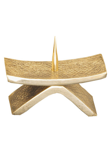 Candelero de altar realizado en metal plateado con diseño abstracto. Tiene una altura de 12 cm.