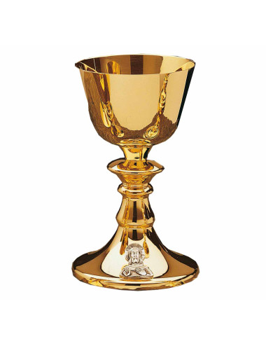 Cáliz realizado en metal dorado con el Pantocrator en la base en metal dorado.