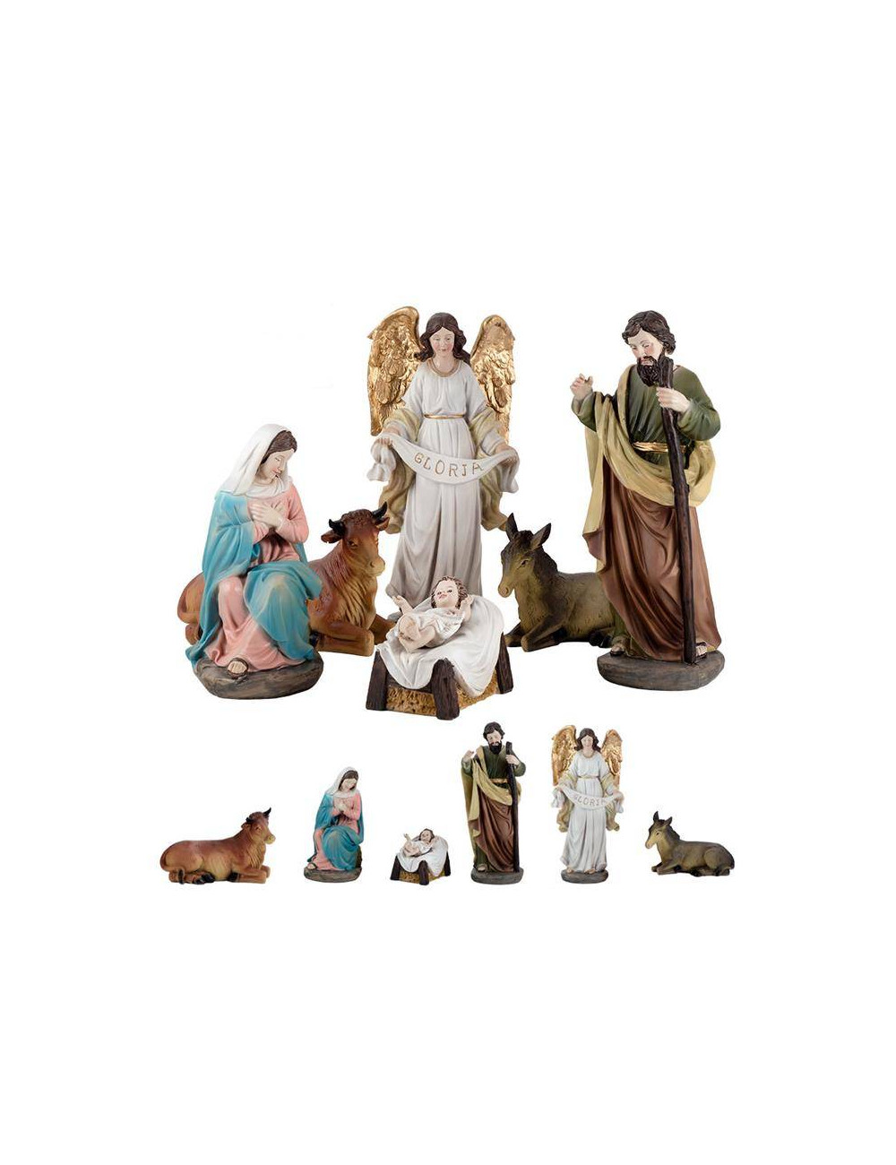 Nacimiento realizado en resina coloreada compuesto por: el Misterio, el ángel, el Buey y la Mula. Tiene una altura de 25 cm.