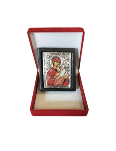 Icono griego con la imagen de la Virgen del Perpetuo Socorro o la imagen de San Jorge realizado en metal y madera, con certificado de originalidad.